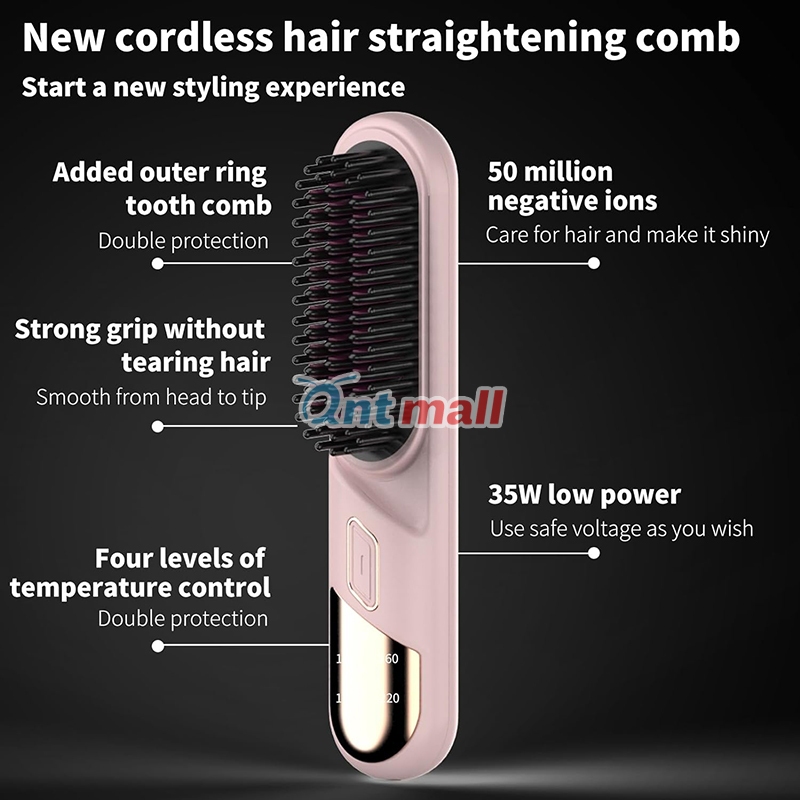 2024 NEW Premium Quality Hair Straightener Comb Curler Wireless Hair Straightener Negative Ion 无线直发梳